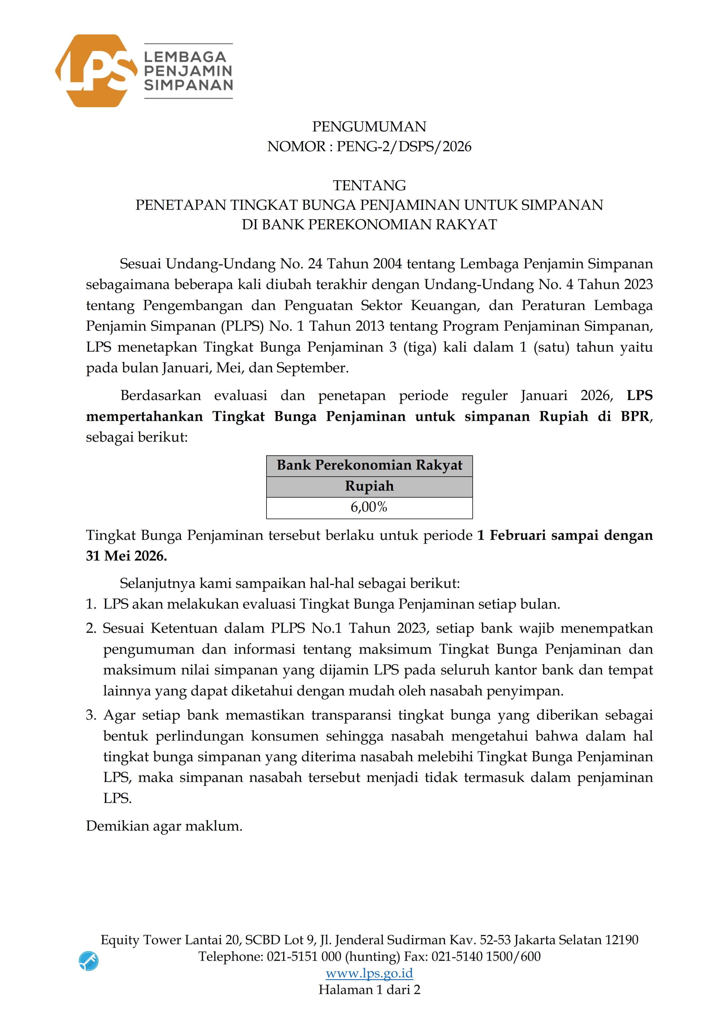 Informasi Suku Bunga LPS