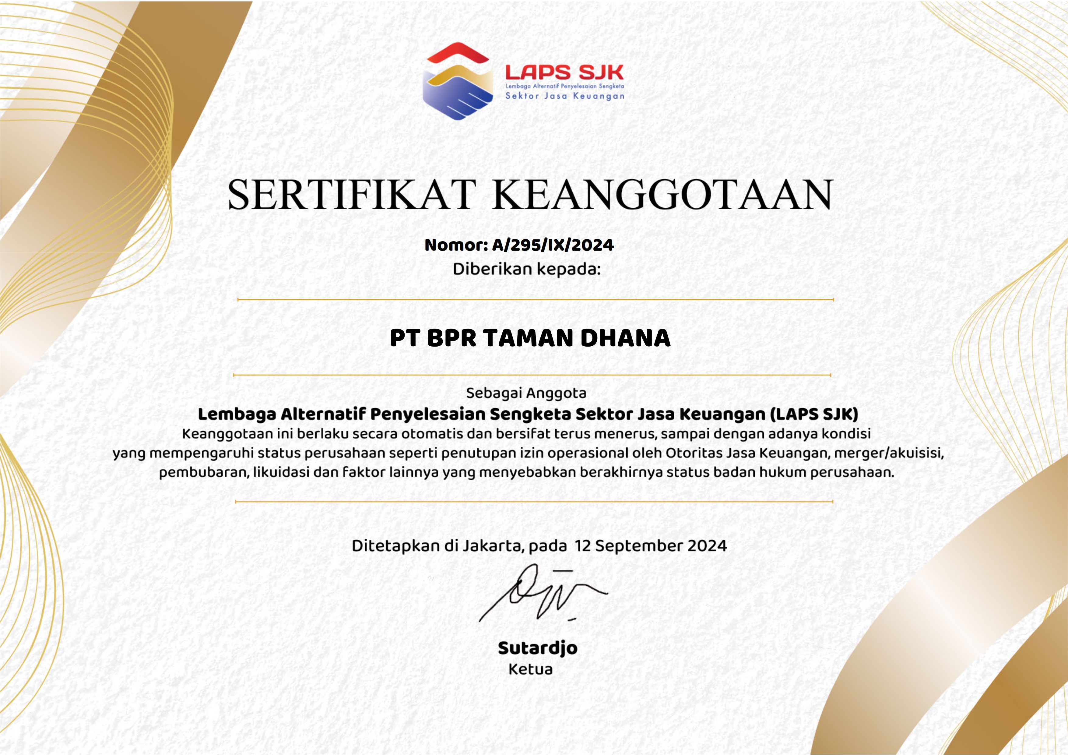 Sertifikat Keanggotaan LAPS